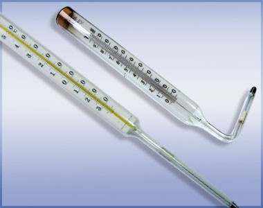 Скляний термометр із вкладеною шкальною пластиною.