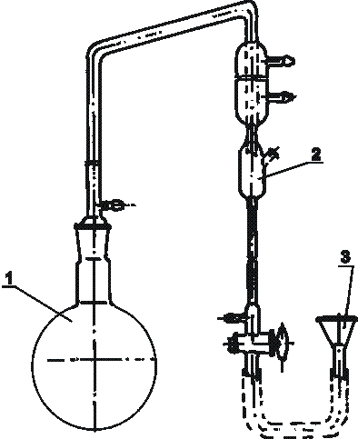 Прилад складається з випарної колби 1 місткістю 1000 мл, системи охолодження 2, воронки лабораторної 3 В-36-50 за ГОСТом 25336-82.